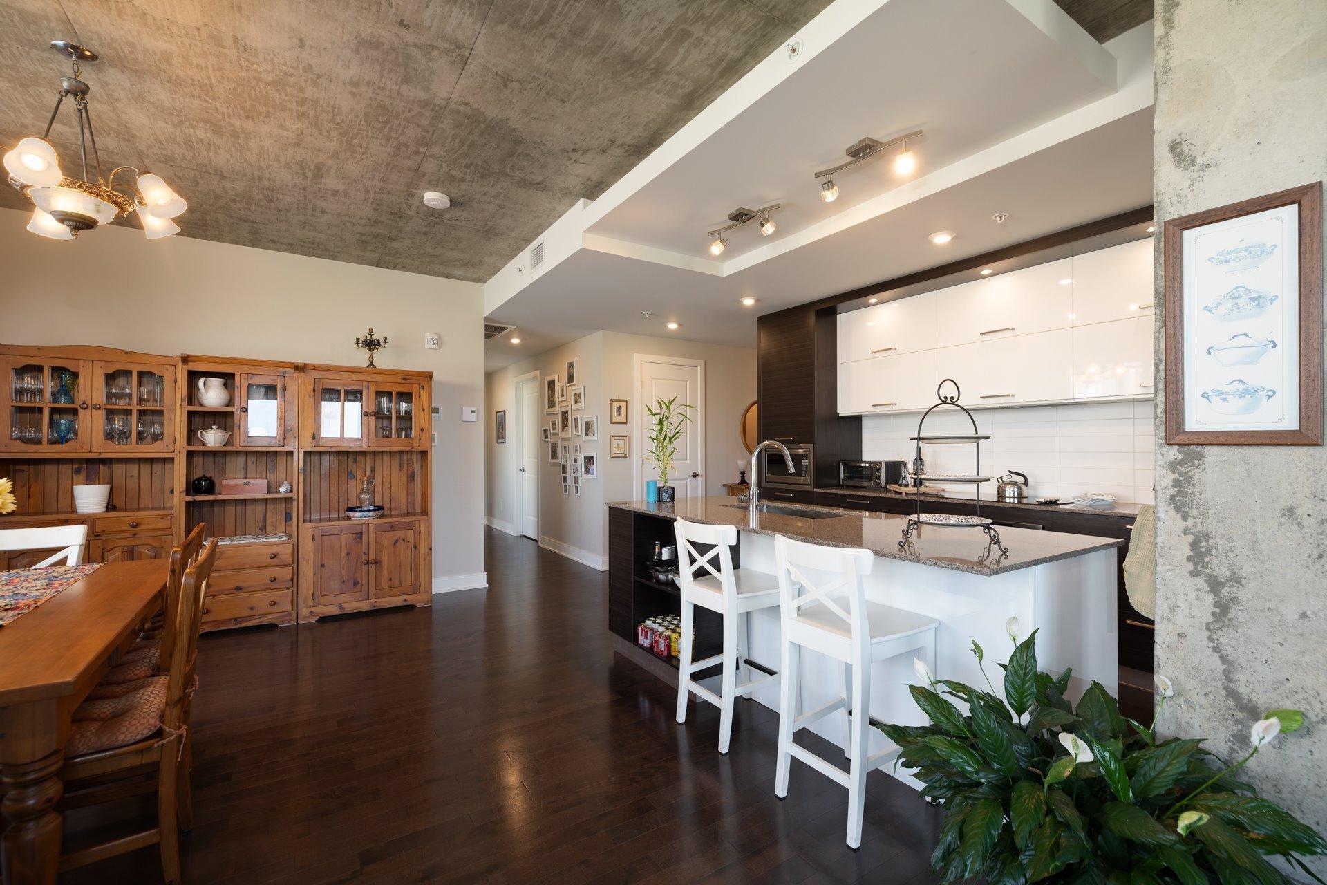 Exceptional executive 3 bedroom corner unit condo in the Quartier Greenwich project in central Pte Claire. Close proximity to Fairview, new REM network, numerous renowned P C family parks and facilities, couple of commuter train stations, HW 20 & 40, Plaza Pointe Claire, and the infamous Pte Claire village. This condo building is LEED certified energy rating. Note the low energy costs. Flooded with natural light-stunning open 'loft style' concept with 9 foot ceilings is sure to impress the most discriminate buyers! Featuring chef's delight kitchen, quartz counters and large center island opening onto generous dining and living areas.